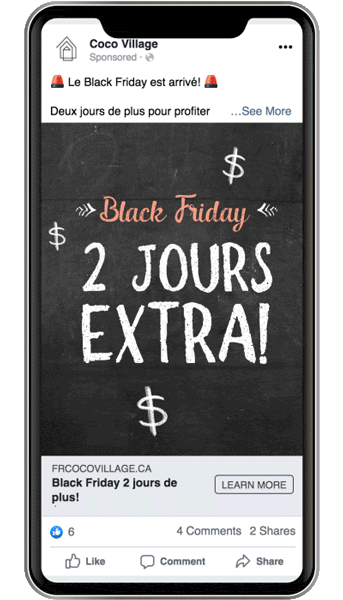 Automatiquement, le Black Friday doublait les prix pour atteindre 1000 personnes avec une publicité Facebook. C’est énorme!