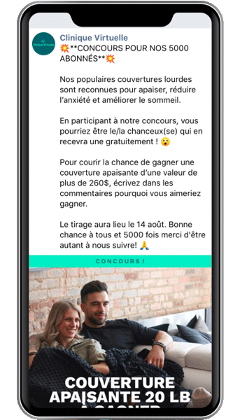 Established in 2018, La Clinique Virtuelle is a Quebec business that offers professional psychosocial support services as well as a variety of clinical products intended for the general public. Among the most popular products are weighted blankets and online training about stress and anxiety management.