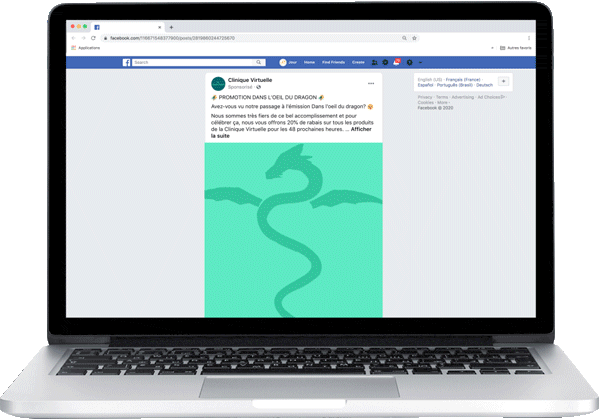 The company's television appearance on the set of “Dans l'œil du Dragon”, combined with extensive advertising coverage [ads, landing page, abandoned cart email sequence] based on retargeting, saw La Clinique Virtuelle’s sales explode to more than $234,000 in just 48 hours.