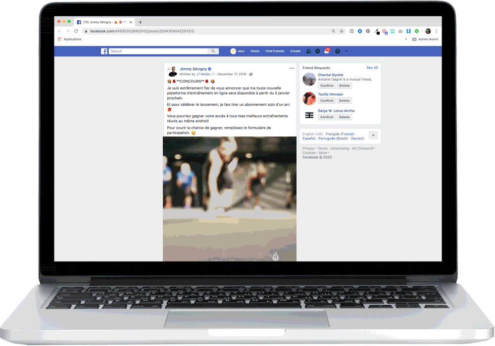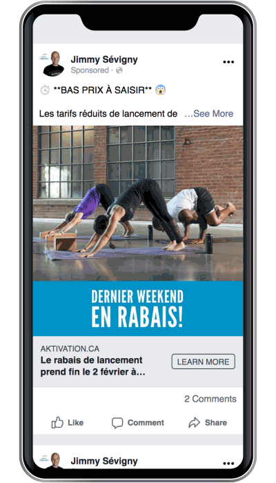 Jimmy Sévigny is a Quebec sports coach and influencer who has more than 330,000 followers on Facebook and Instagram. He offers many services to his community, such as food supplements, as well as Mega Workout training throughout the province!