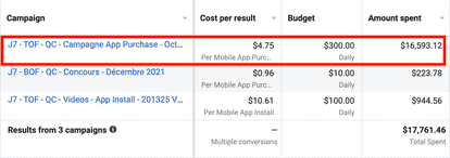 Here are the results of the acquisition campaign for all audiences for the last 11 days of the month.