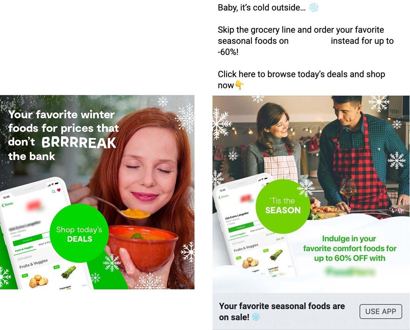 The ads address a very real reality in Canada, the winter cold, which can hinder a simple trip to the grocery store.