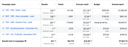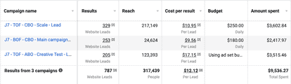 - A retargeting campaign in CBO (which only targeted our best audiences).
