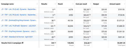 The client wanted to use a method that we completely discourage: multiplying campaigns and targeting only one audience per campaign. It’s like using Audience Budget Optimization, but via campaigns instead.