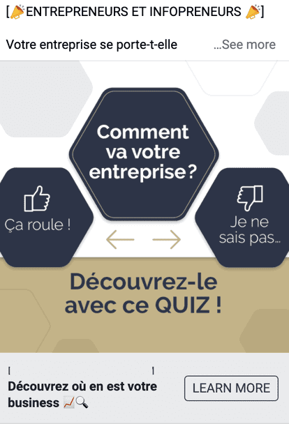 That's why our Account Manager, Louis-Daniel, launched a Quiz campaign for his Infopreneur client that targets entrepreneurs.