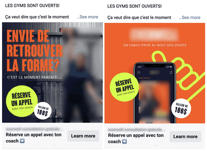 The first one explains the offer right away (a $100 gift), and the second one adds context to the offer (the reopening of gyms and sports centres).