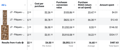 “During the month of March (the period before the start of the challenge), the client was able to generate 168,000 euros in sales for an advertising investment (Facebook and YouTube) of 27,440 euros. The ROAS for March was 6.12, which is pretty good for an infopreneur selling courses.