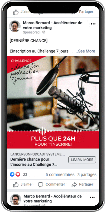 Comme beaucoup d’autres infopreneurs, Marco Bernard avait du mal à vendre des formations à prix élevé directement sur Facebook. Cela prenait plusieurs semaines, voire plusieurs mois, avant qu’un lead ait consommé tout le contenu gratuit et décide de passer à l’action. C’était une perte de temps et d’argent pour l’Académie du Podcast.