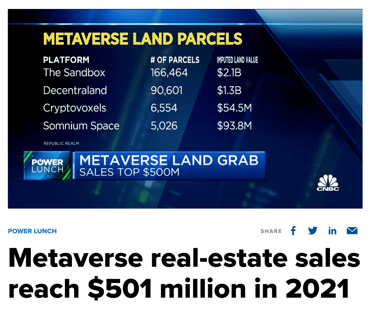 Antoine, savais-tu qu'en 2021, l’achat sur les Metaverses actifs de terrains virtuels ont généré pas moins de 501 millions de dollars ?