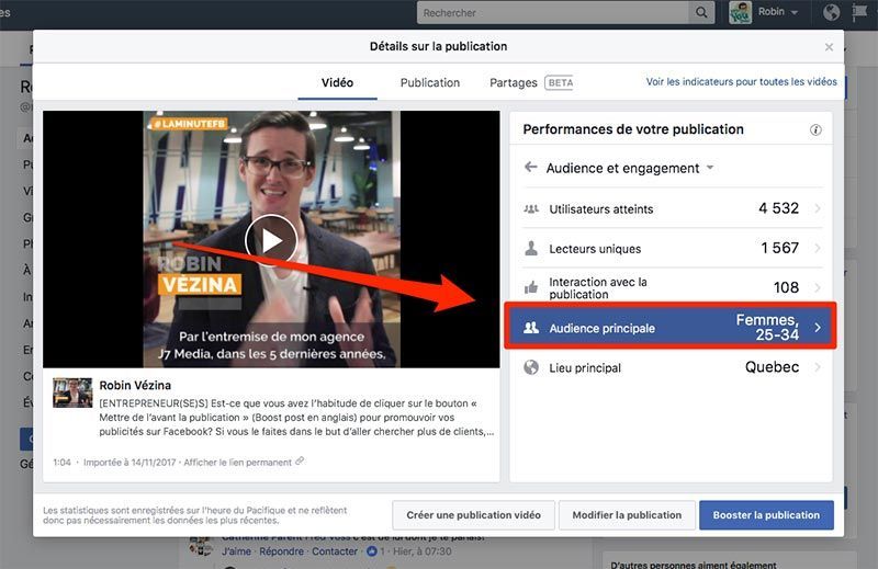 3. Cliquer sur « X personnes atteintes » au bas d’une de vos publications.